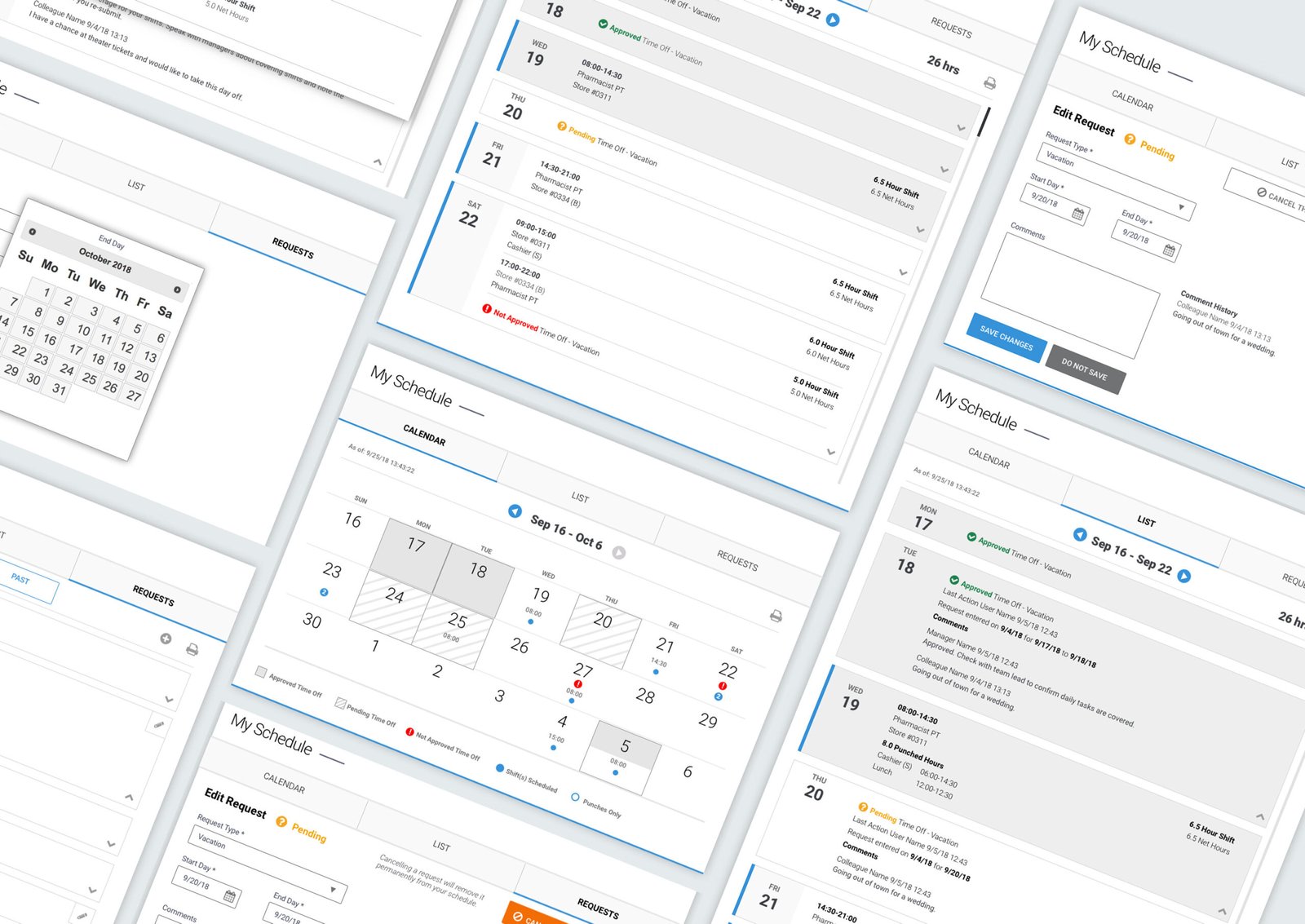 Working with the client and interviewing employees, we identified essential scheduling tasks and created a system that accounted for viewing shifts, requesting shift changes and time off, management approval, and interdepartmental communication to make shift exchanges more efficient.